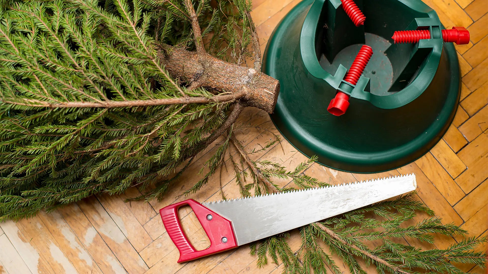 Use a sturdy stand that holds at least 1 liter of water to keep your tree well-hydrated.